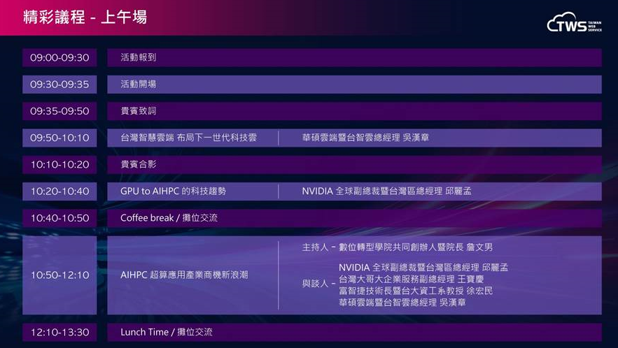 - 主辦單位:台灣智慧雲端、台灣大哥大、NVIDIA